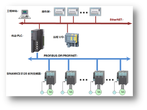 通過PROFIBUS DP/PN網(wǎng)絡(luò)組態(tài) ,實(shí)現(xiàn)PLC對SINAMICS S120變頻器的完全控制和狀態(tài)監(jiān)視;